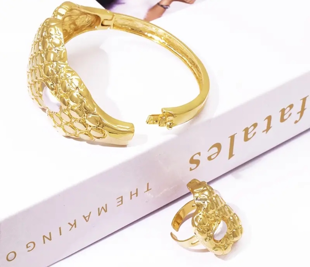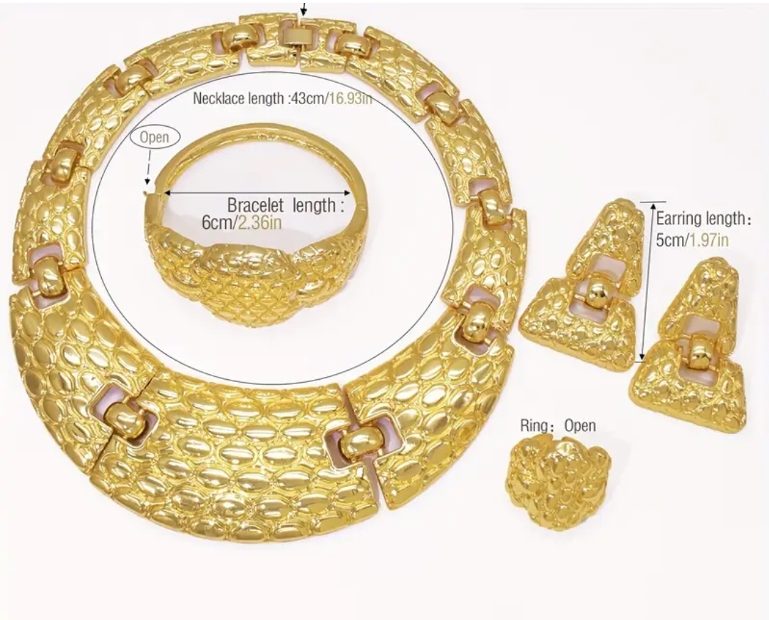 Elegant high-quality gold-plated Middle Eastern style wedding party jewelry set: large necklace, bracelet, earrings, ring. Two colors available, suitable for banquets, holiday gifts, and daily wear. 5pcs., Daily Wear Jewelry Set, Middle Eastern